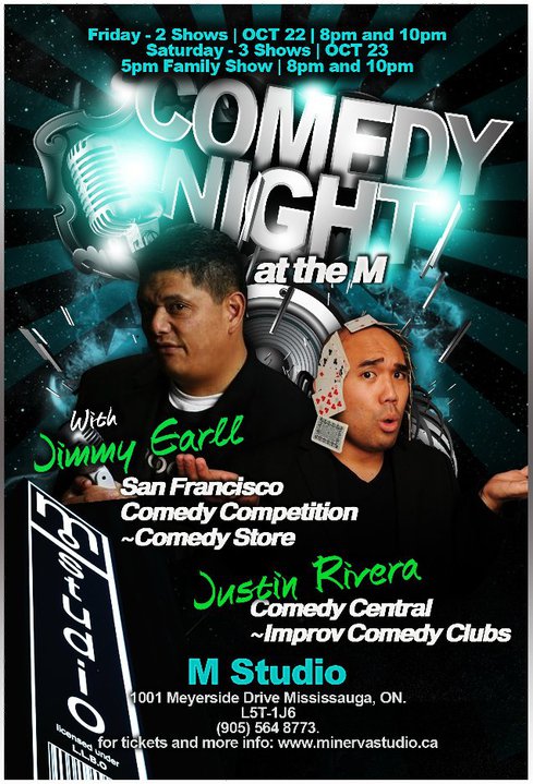 Watch the Stand-Up Comedy and Magic Night at the M with JUSTIN RIVERA (Comedy Central, TruTV, The Speed Channel and the Improv Comedy Clubs) and JIMMY EARLL (San Francisco Comedy Competition, the Killers of Comedy, Sirius and XM Radio and the Comedy Store) Friday to Saturday October 22 & 23!
